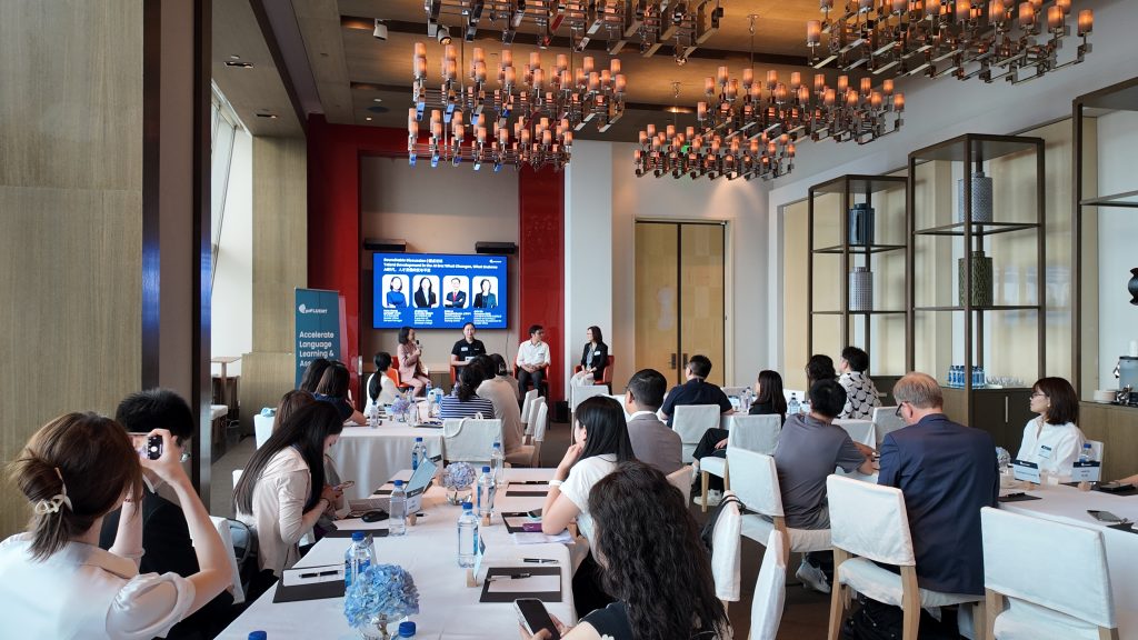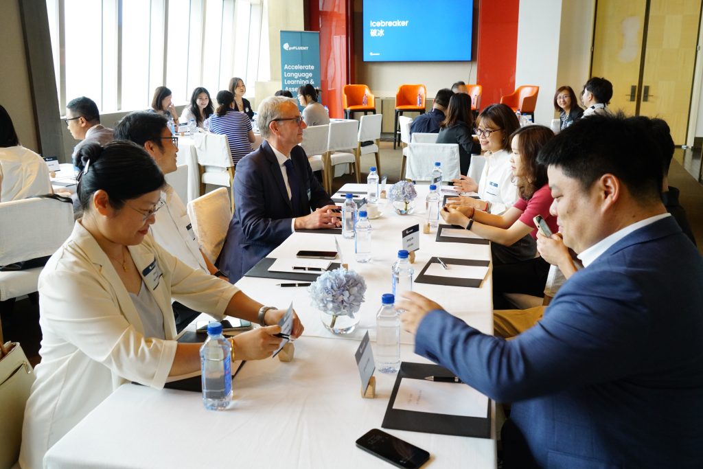 除了干货满满的圆桌对话,活动还设置了沉浸式社交环节。嘉宾们在云端视野之上轻松交流,激发灵感。会后,开放式晚宴继续为嘉宾们提供了自在畅谈的机会,进一步加深了彼此间的了解与合作。值得一提的是,goFLUENT首席执行官Christophe Ferrandou先生也亲临现场,分享了goFLUENT在AI技术赋能语言学习和企业培训方面的最新进展,令现场嘉宾深受启发。